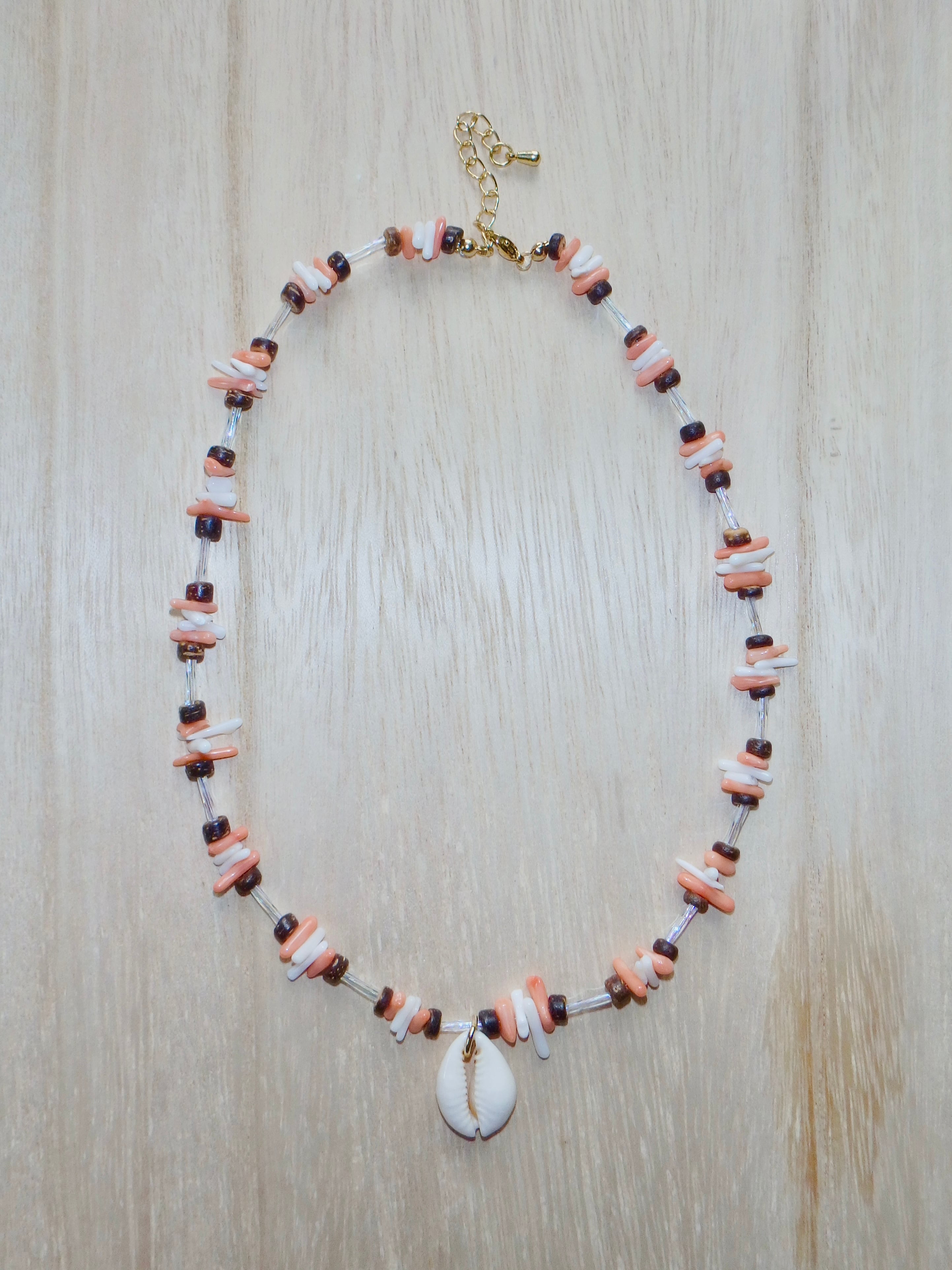透明感のあるロングビーズをベースに、コーラルとホワイトのサンゴのアクセントを加えました。